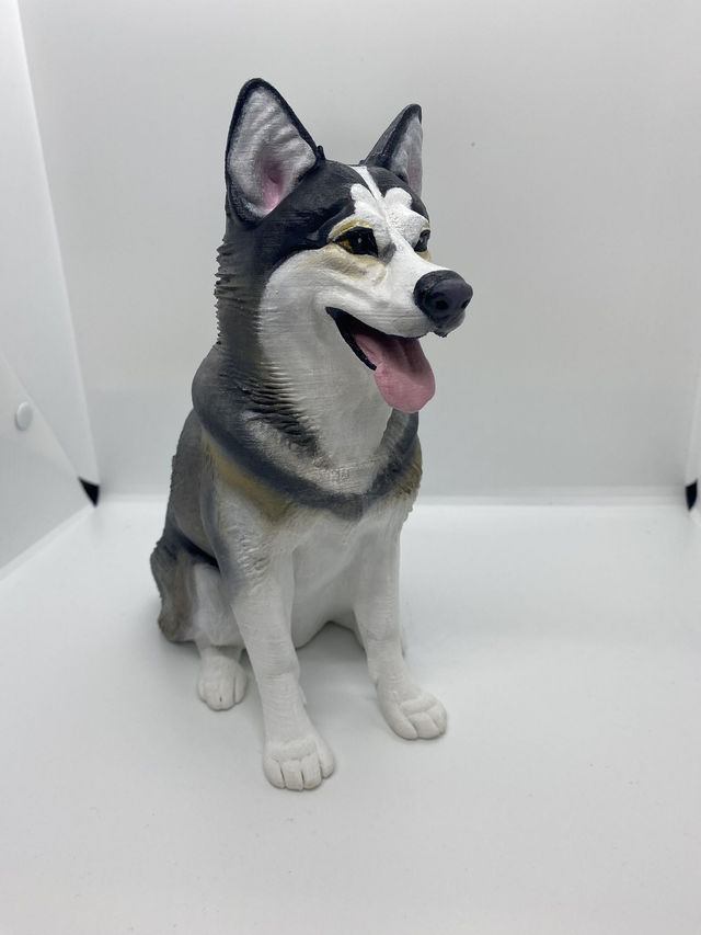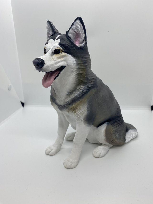3D Printed Husky figurine, standing at a height of 8 inches. Hand-painted to capture the Husky's iconic features with lifelike precision. Perfect for dog lovers and collectors alike. Display it proudly on your desk, shelf, or bookcase to add a touch of charm to any room. Makes a unique and thoughtful gift for any occasion.